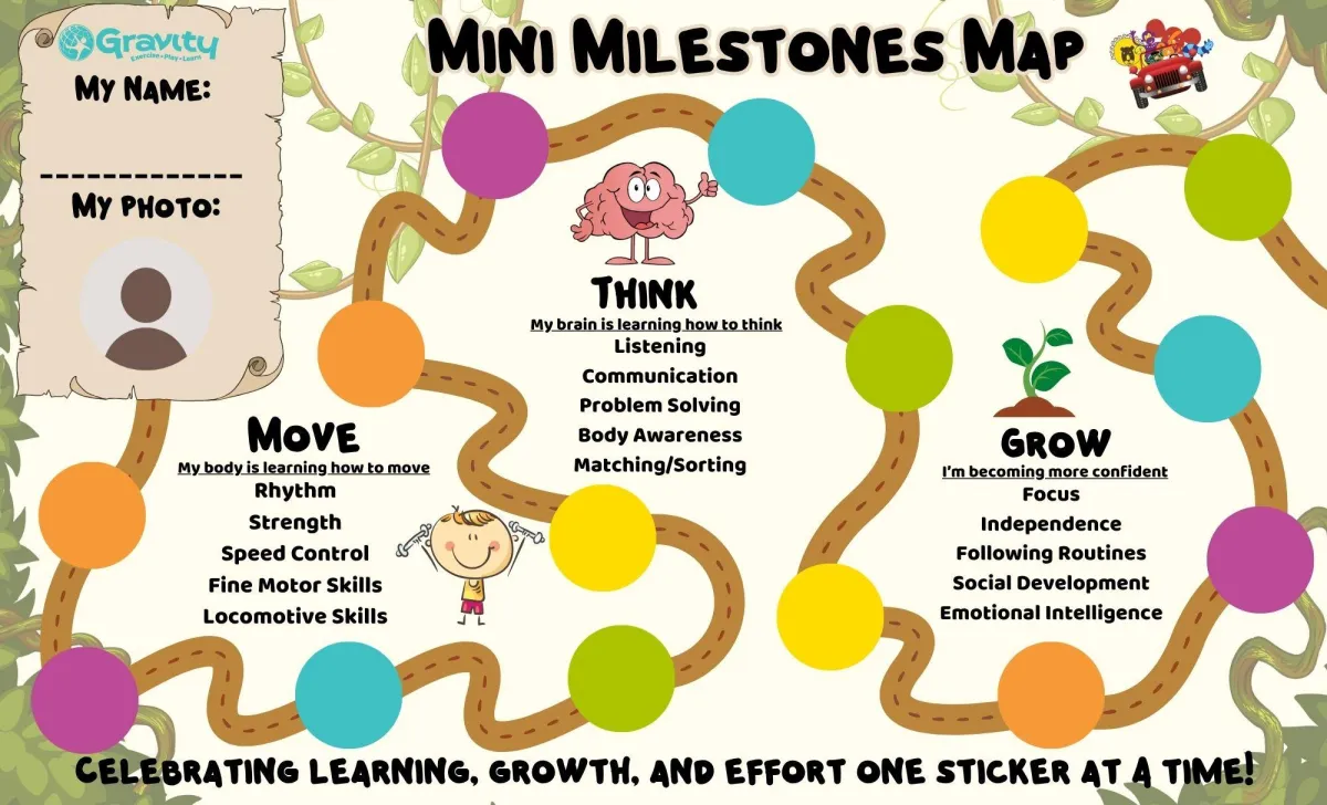 This map highlights the core values and developmental milestones we focus on with our littlest learners (ages 1–3). From learning to take turns to developing body awareness, each value helps lay the foundation for confident, capable kids—both in and out of the gym.